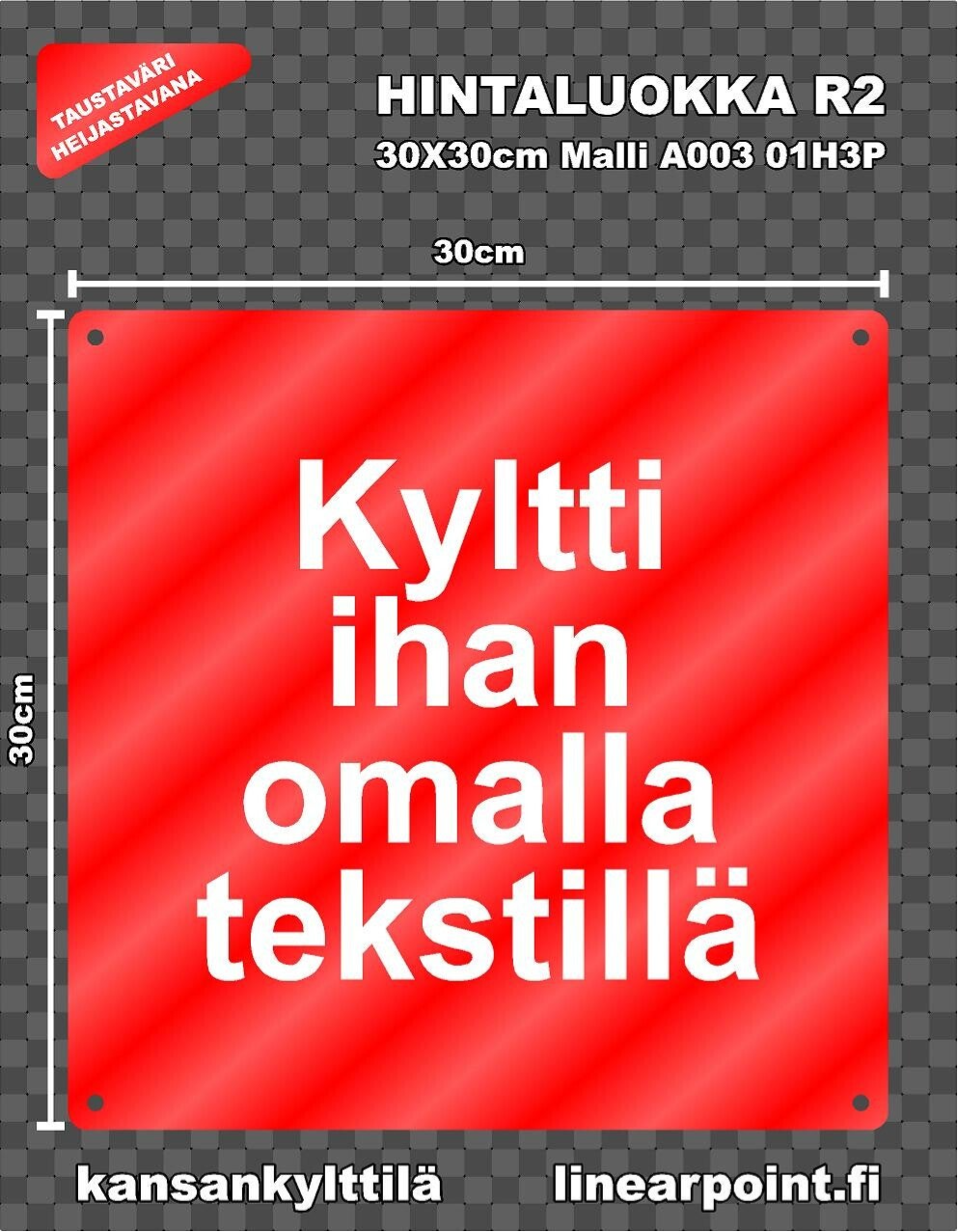 Valmistetaan tarpeisiin sopivat kyltit.